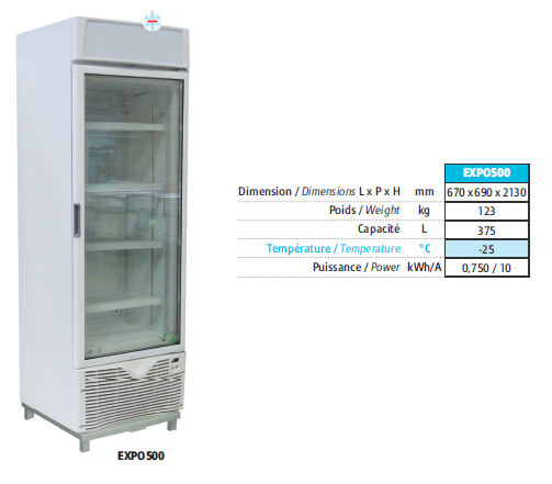 - Un stand avec congélateur 1 190 € HT soit 1 428 € TTC : équipé d'une table nappée de 1,20 x 0,60 m, d'une chaise et d'une armoire vitrée congélateur, verticale libre service, froid négatif.